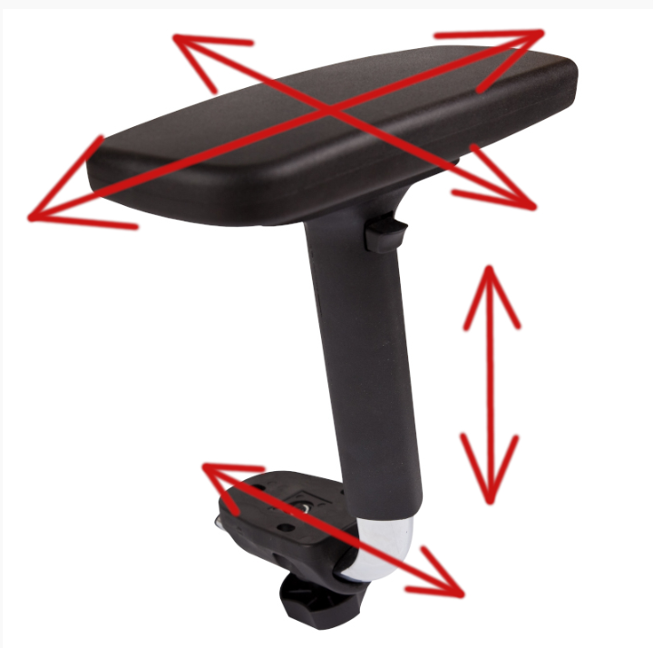 P98 4D 4D stavitelné područky, materiál hliník, měkčený top, horizontální posuv držáku područky do stran od sedáku |