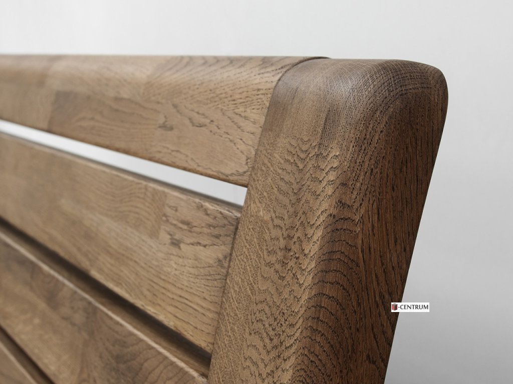 Masivní dřevo, které je použito na výrobu postele, je precizně zpracováno do nejmenšího detailu a vytváří dokonale zaoblené linie. Originálně zpracované čelo postele působí masivním dojmem a dodává lůžku zajímavý vzhled. Postel je vyrobena z masivního bukového nebo dubového dřeva s doživotní zárukou.