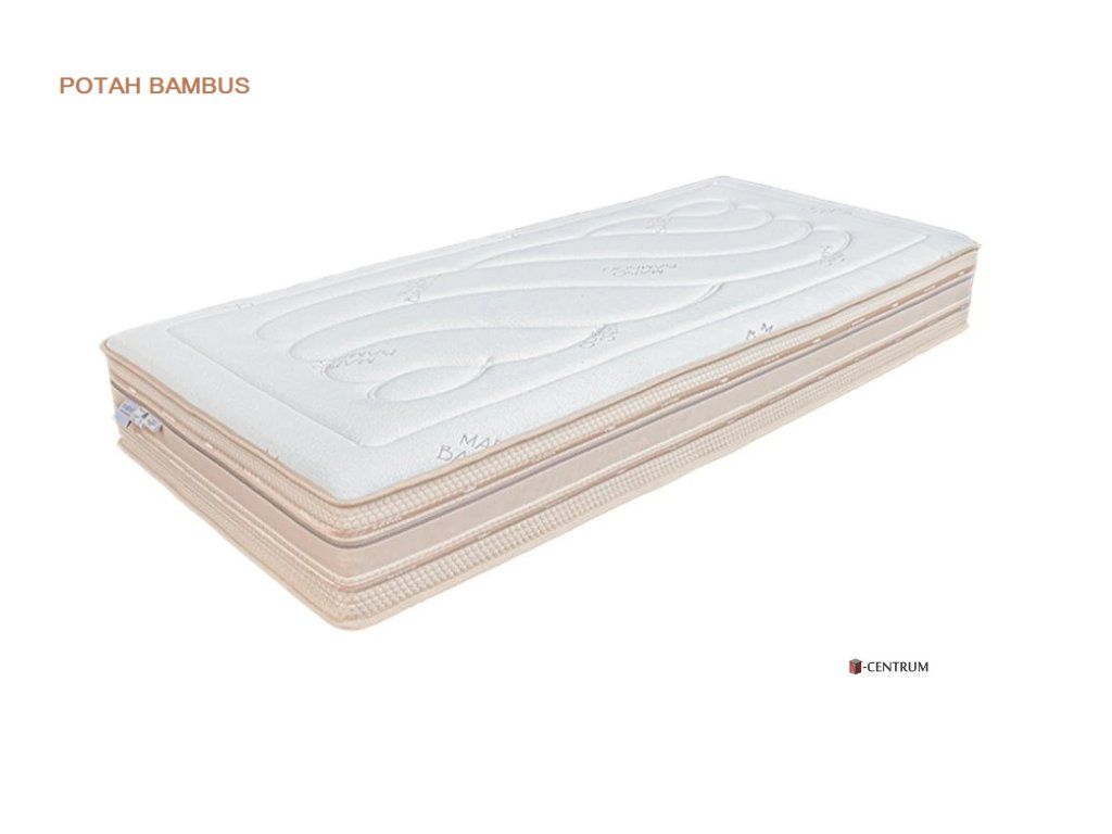 Potah BAMBUS .Vrchní látka s bambusovým vláknem, jež je extrahováno přímo z bambusového stébla dodává potahu příjemnou měkkost a zároveň i vyšší pevnost. Bambusové vlákno dokáže ve větší míře přijímat vlhkost a následně při změně podmínek uvolňovat do ovzduší. Bambus vytváří také účinnou bariéru proti bakteriím. Pratelný na max 60ºC.