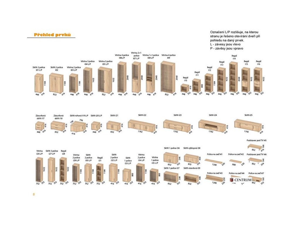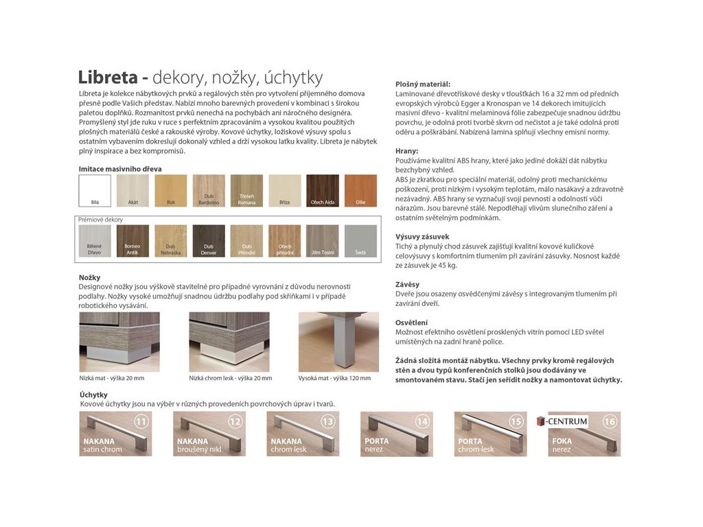 Přednosti nábytkové sestavy Libreta- Mnoho navzájem kombinovatelných prvků