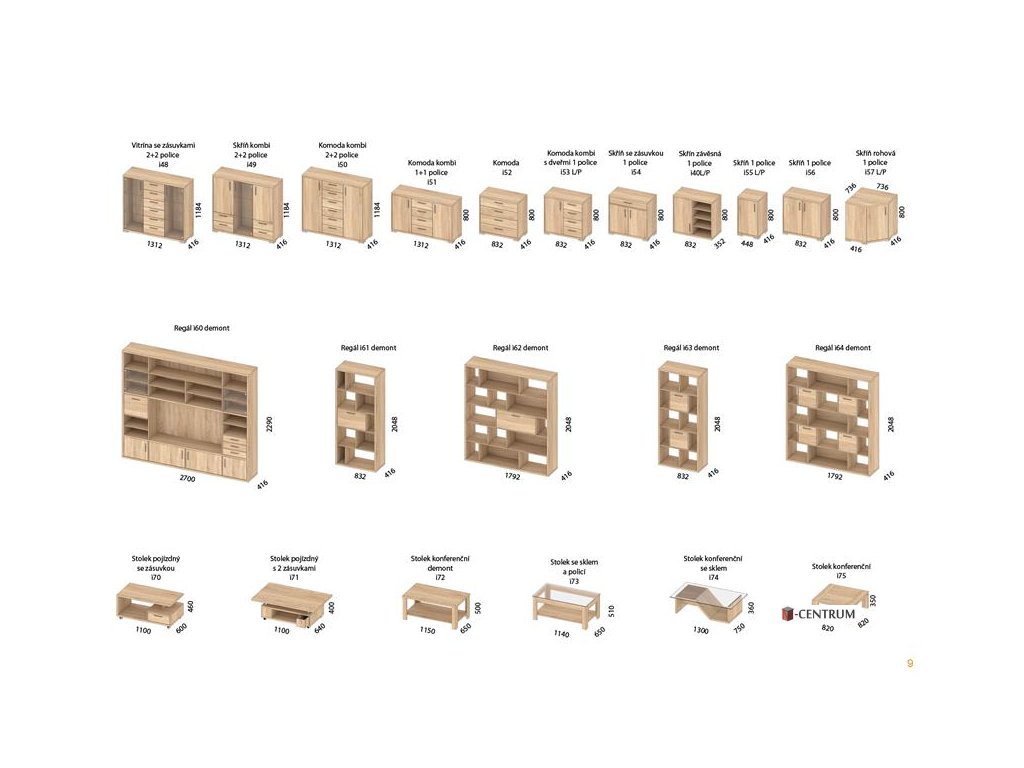 - S výjimkou regálových stěn jsou prvky ve smontovaném stavu
