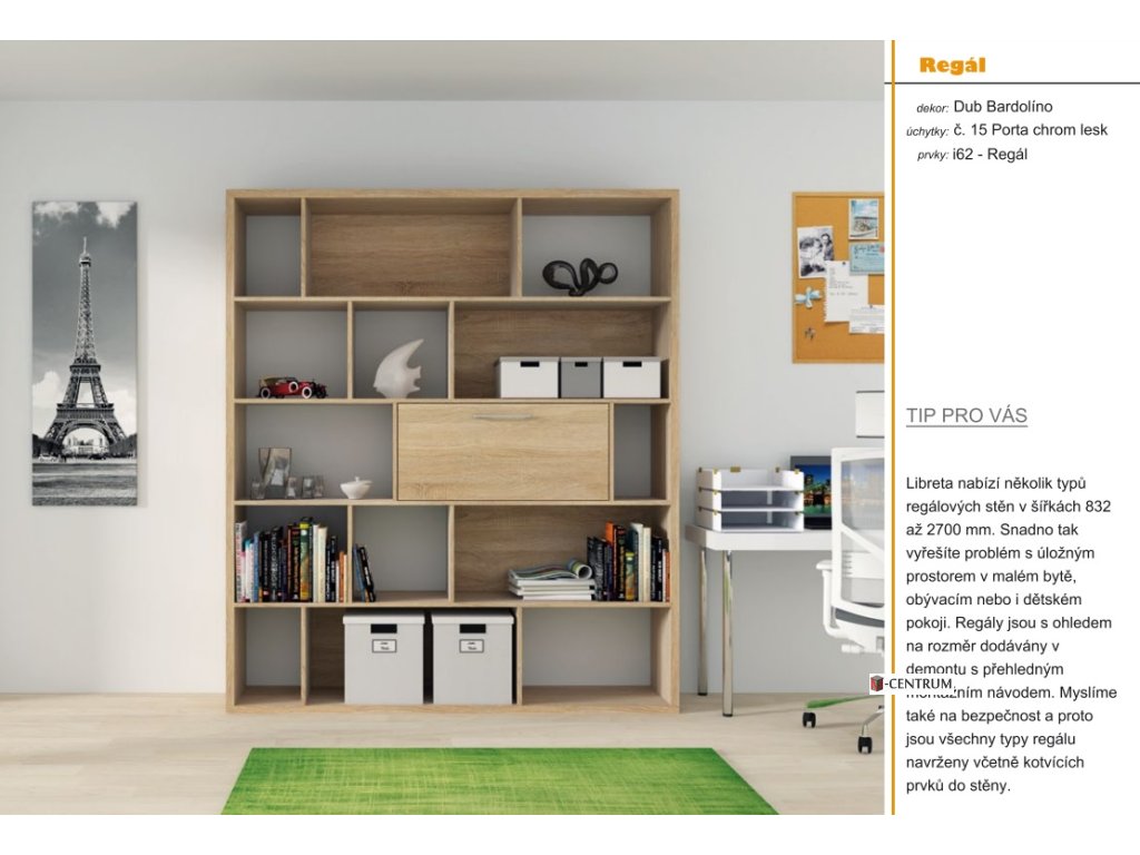 Přednosti nábytkové sestavy Libreta- Mnoho navzájem kombinovatelných prvků