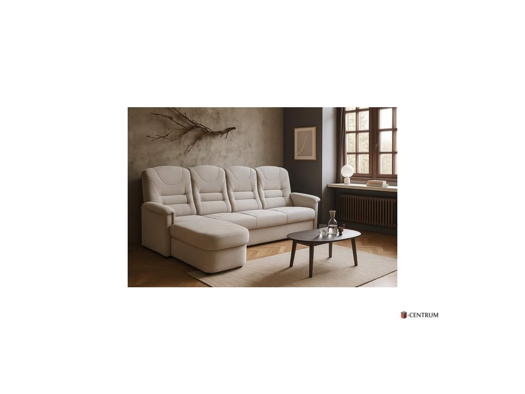 Klasická čalouněná sedací souprava umožňující velkou variabilitu jednotlivých sestav. Pohovku je možné rozložit nebo zde umístit úložný prostor. Křeslo může být pevné či polohovací. Sedací souprava díky 107cm vysokému opěráku zajišťuje maximální pohodlí sezení.