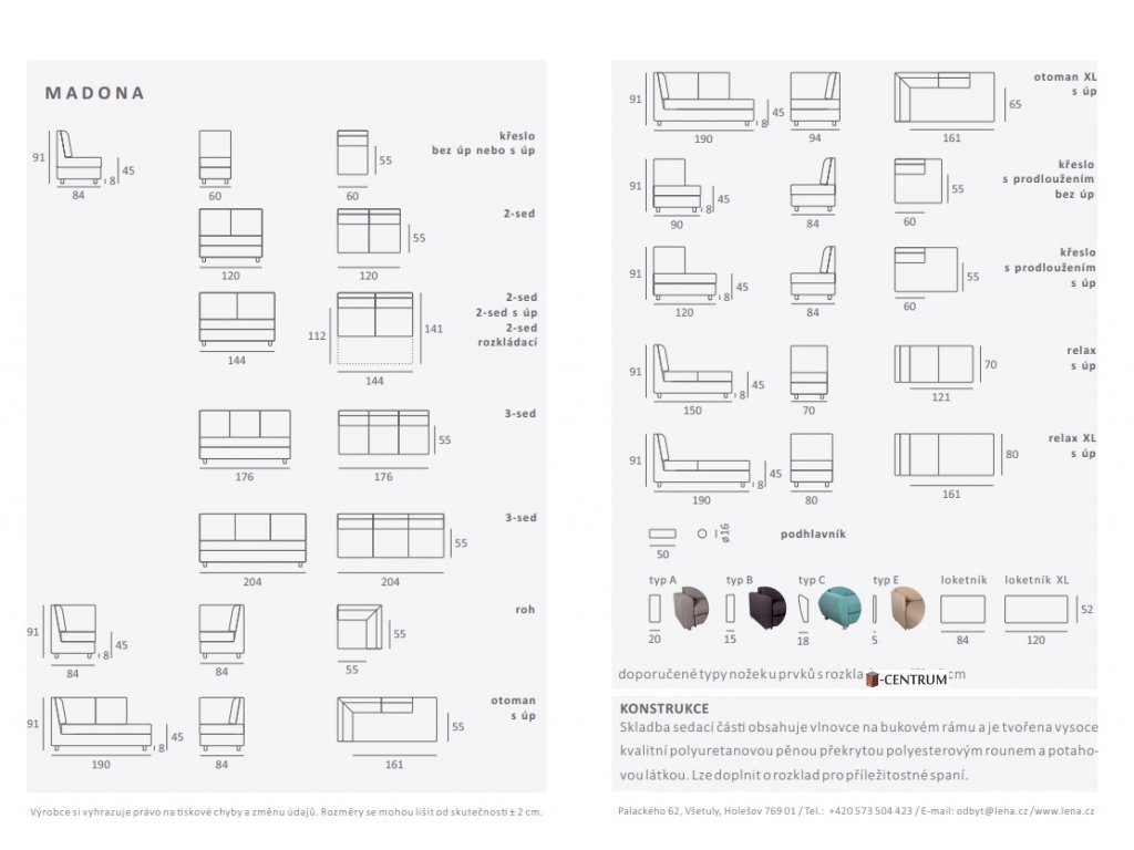 V sedácích kvalitní HR (studené) pěny, Variací komponentů lze vytvořit několik rozměrově a tvarově atraktivních sestav.